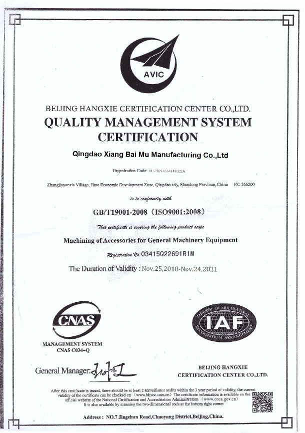 Qingdao Xiang Bai Mu Machinery Manufacturing Co. , Ltd. Located in the beautiful coastal city --Qingdao. started business since 2006,with nearly 20 years of production experience.The company at first mainly engaged in mechanical processing, welding, stamping, sheet metal, grinding, forging, precision casting products, die casting products