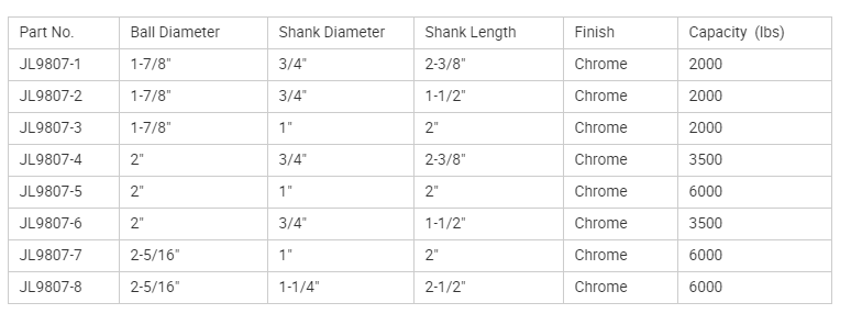 • 1-7/8'' ball head: bearing 3,500 pounds, threaded rod diameter 25.4MM, threaded rod length 50.8MM
